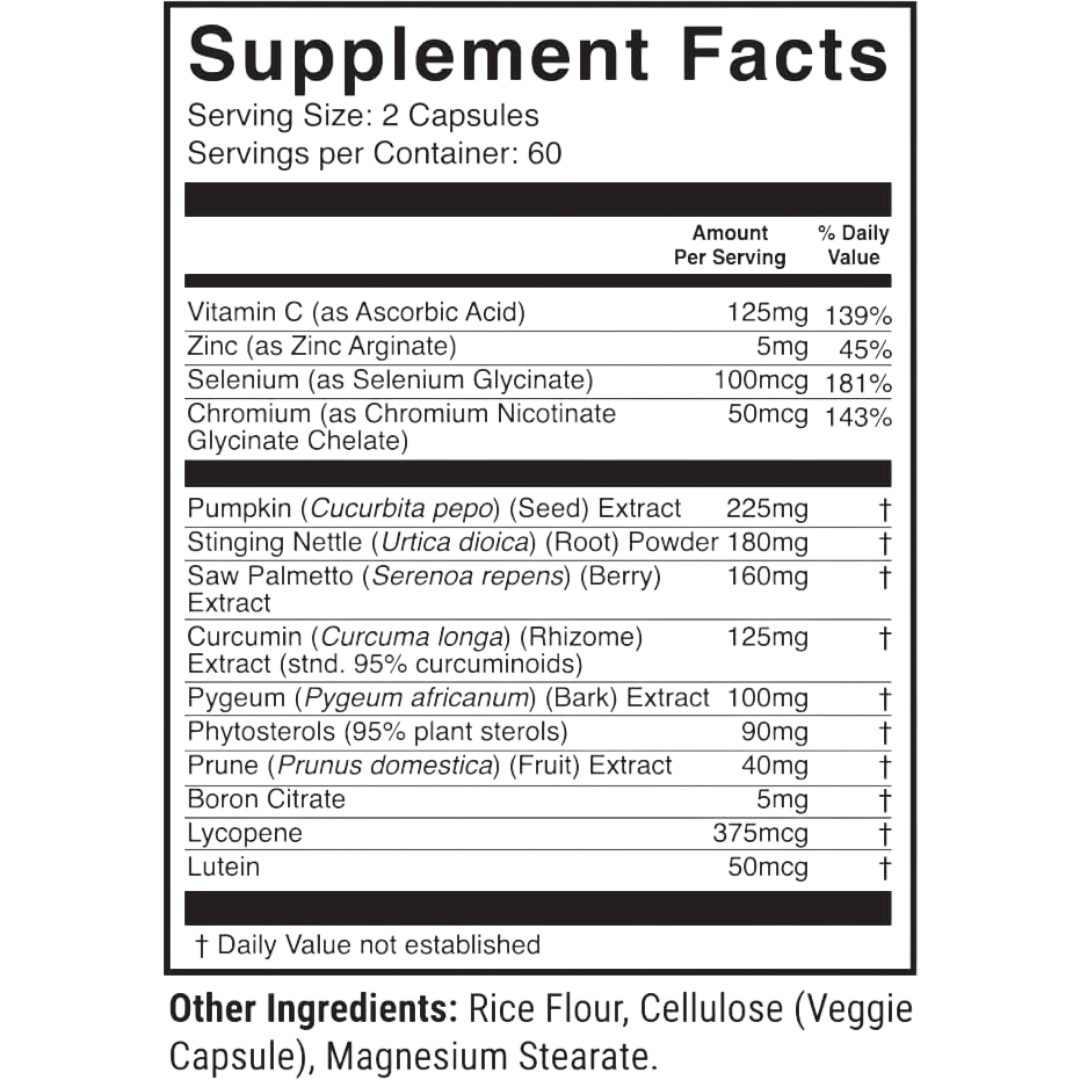 To further protect long-term wellness, the formula includes vitamin C, selenium, and curcumin extract (standardized to 95% curcuminoids), along with lycopene and lutein. These potent antioxidants help combat free radical damage and support overall men’s health.