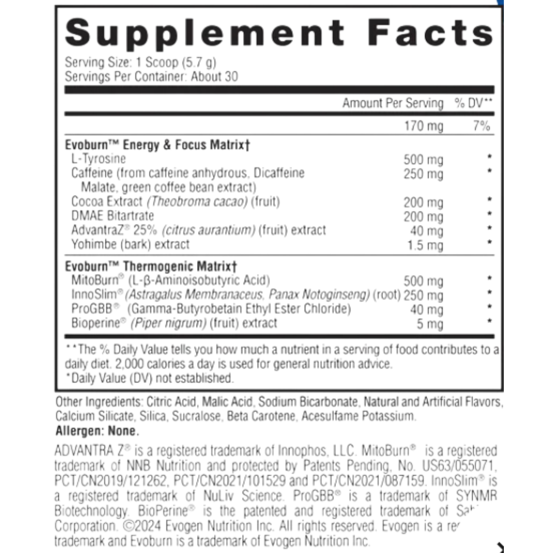 Take control of your fat loss journey with Evogen Evoburn.