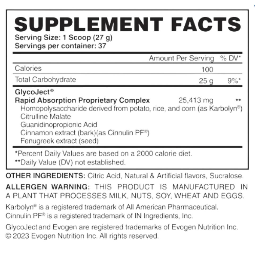 Evogen GlycoJect helps maximize post-workout replenishment and amplifies your gains with every scoop.