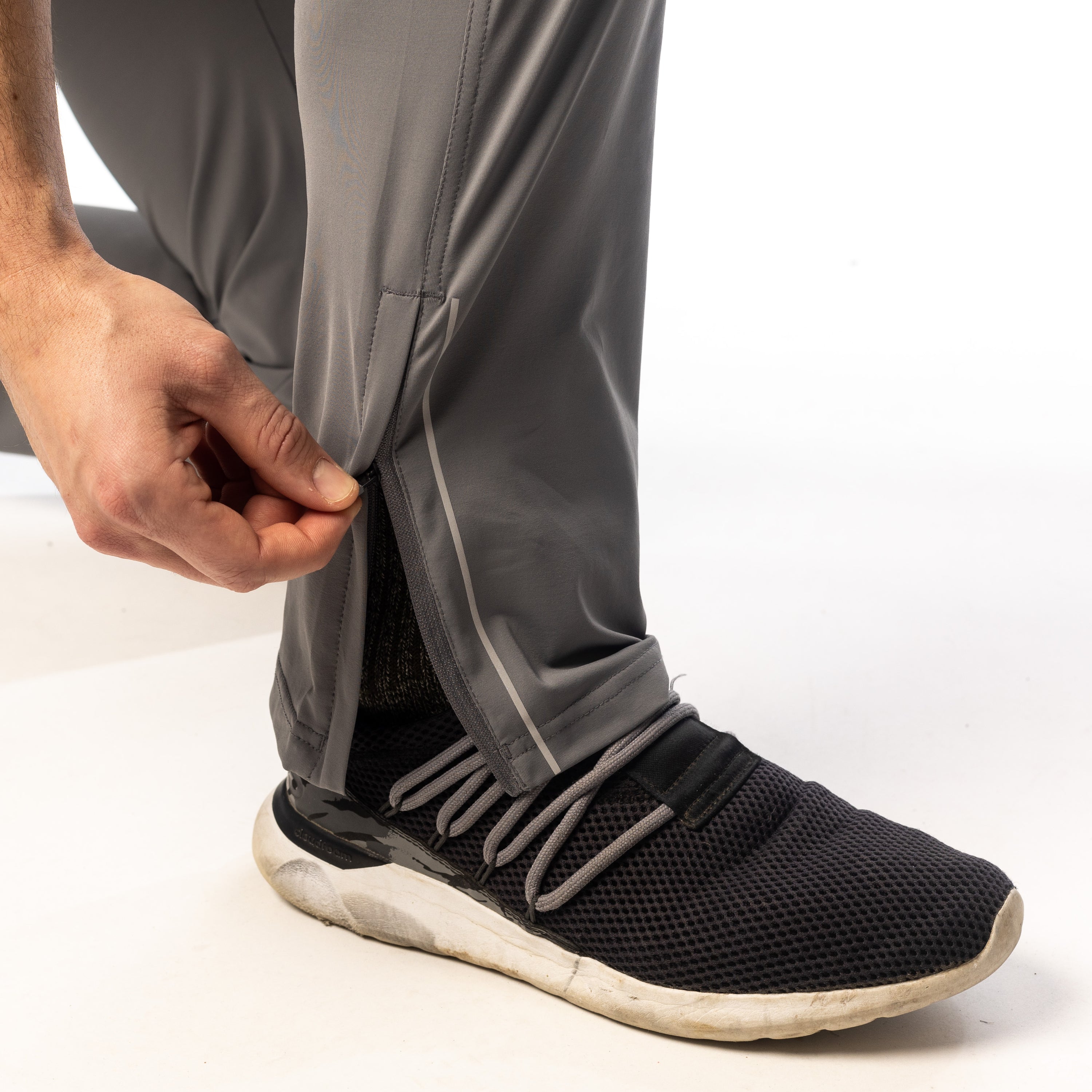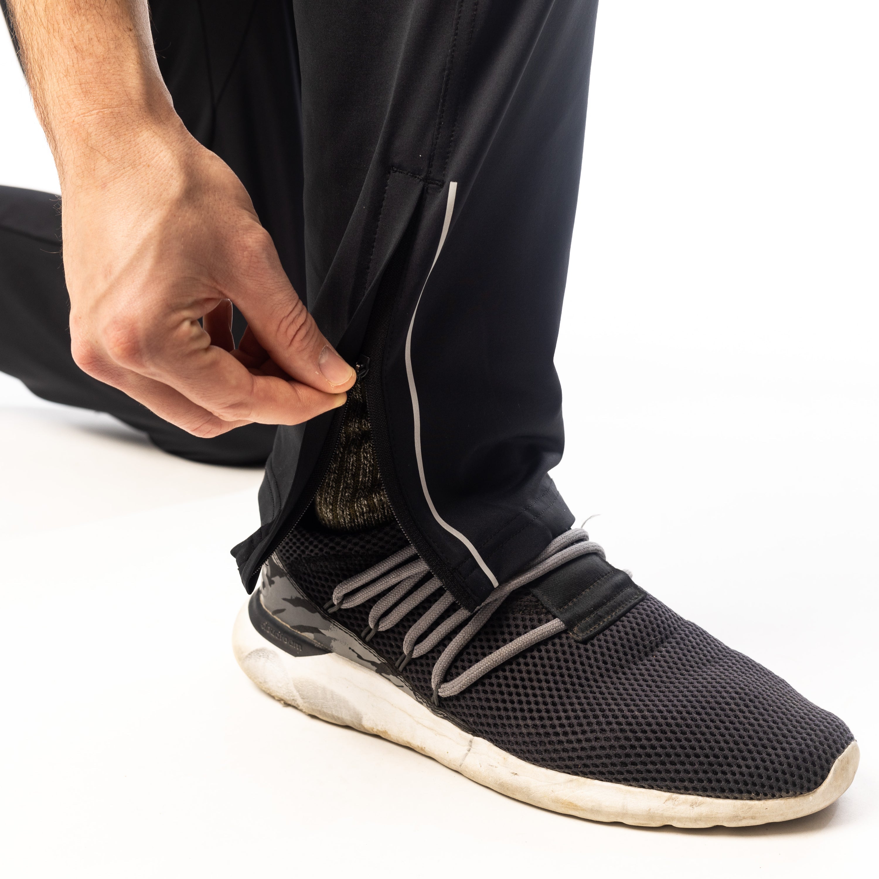 - Zippered pockets and leg openings