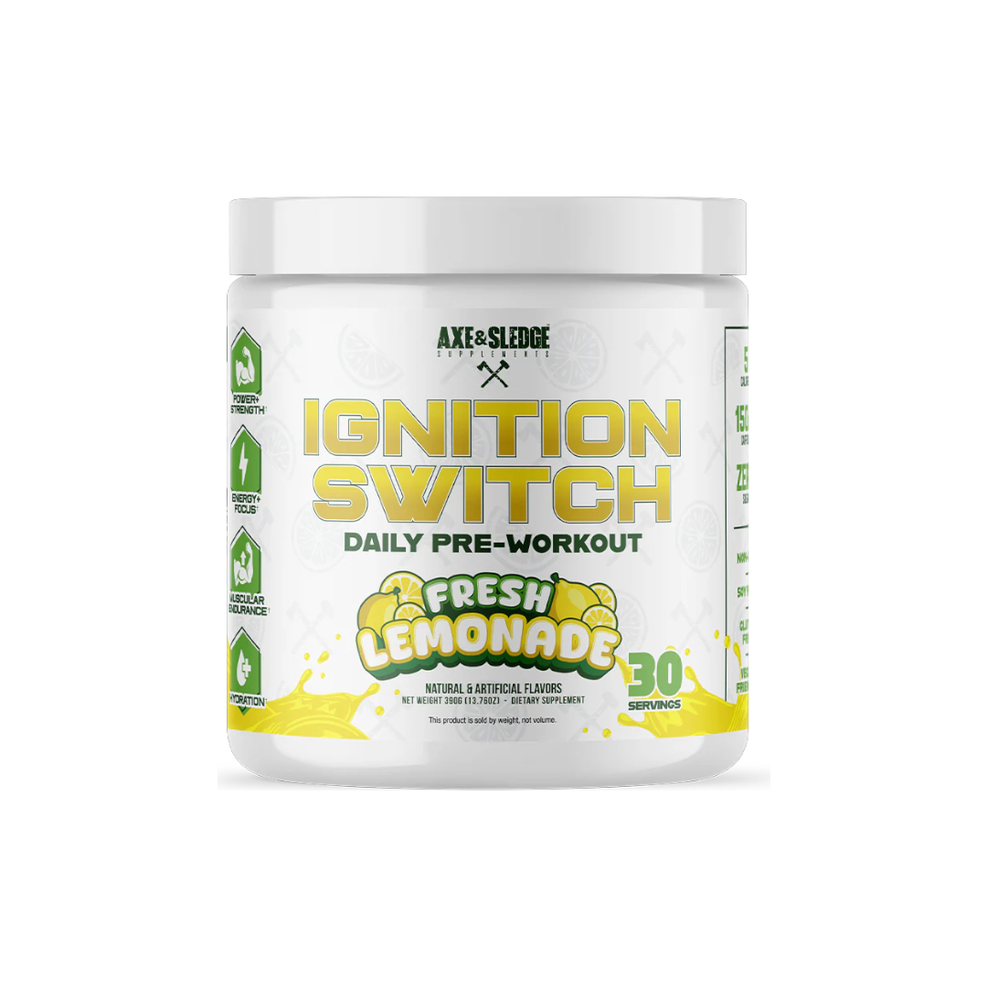 Flip the switch and dominate every training session with Axe & Sledge Ignition Switch per-workout. Designed as the ultimate base pre-workout ... it delivers clean energy, sharp mental focus, and enhanced muscular endurance — all without excessive stimulants.