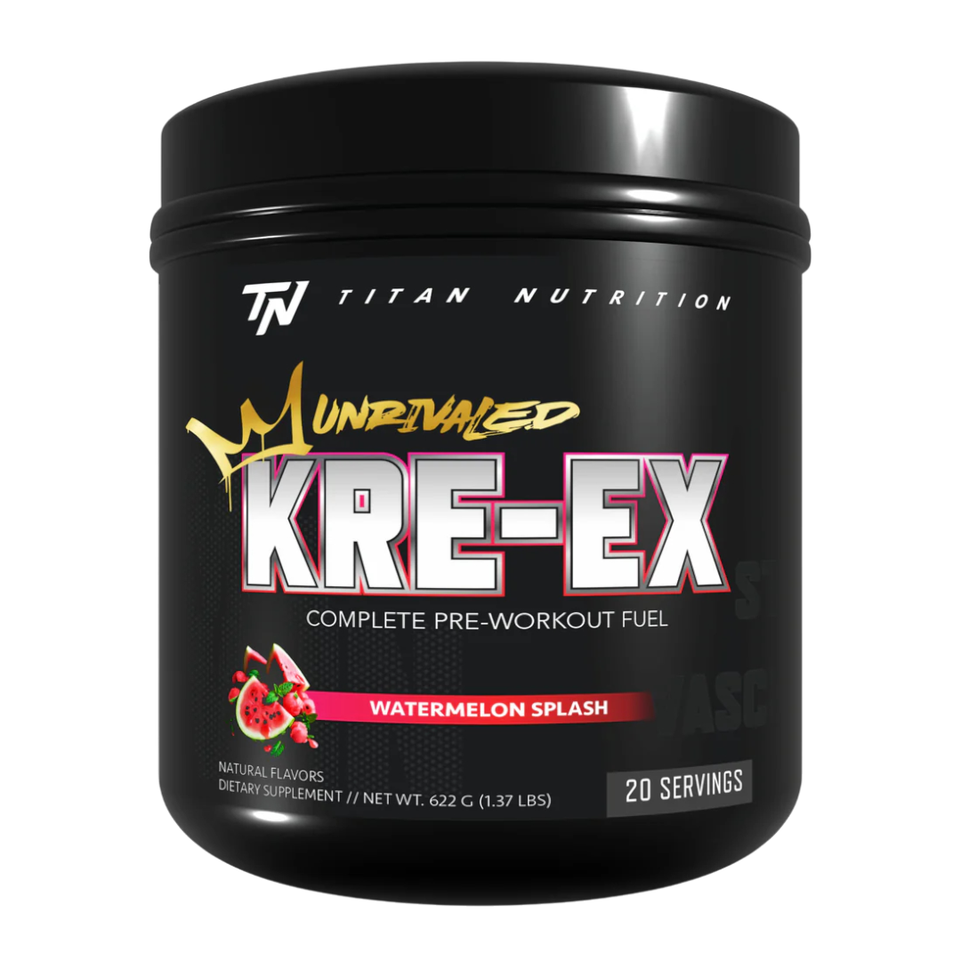 Kre-Ex™ Unrivaled is Titan Nutrition’s flagship pre-workout, engineered for athletes & gym-goers who demand maximum intensity, focus, and muscle pumps. This potent formula delivers 31 grams of fully disclosed, clinically dosed ingredients ... including five advanced performance combinations designed to elevate every workout.