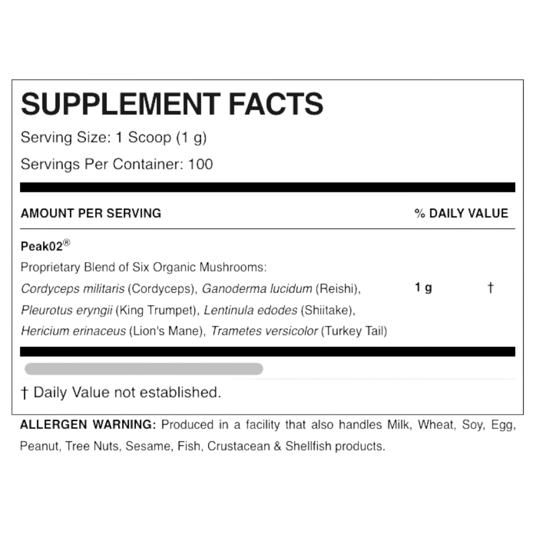 PeakO2® is a certified organic blend of six adaptogenic mushrooms, cultivated in the USA, designed to help reduce oxidative stress, enhance endurance ... and improve overall performance.
