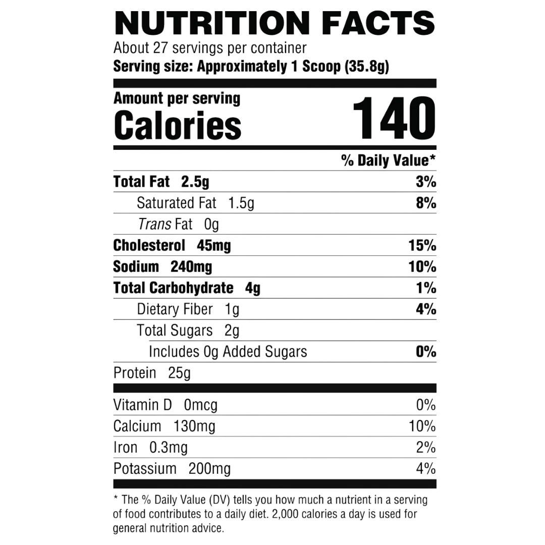 - 25g of Whey Protein per serving, primarily from Whey Isolate for fast absorption and optimal muscle support