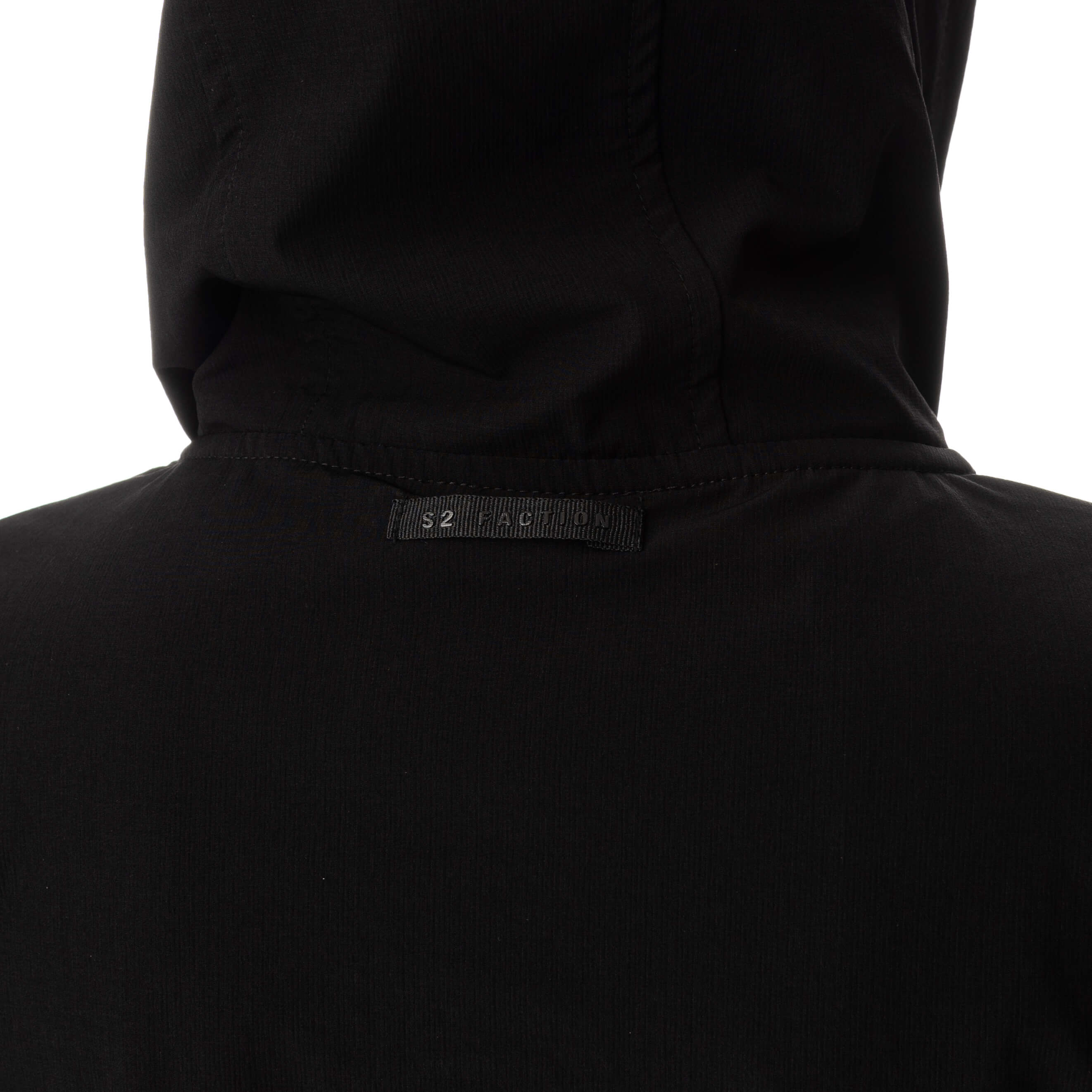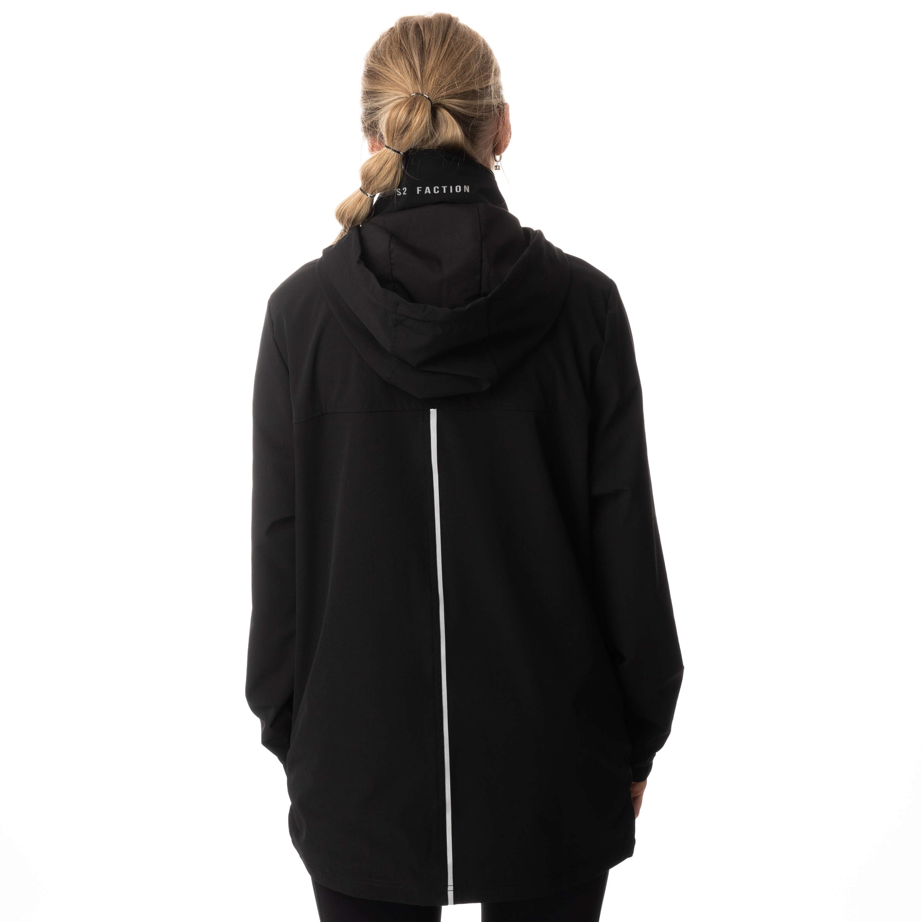 - Drawstrings at hood + additional high collar feature to keep neck protected from the wind/rain