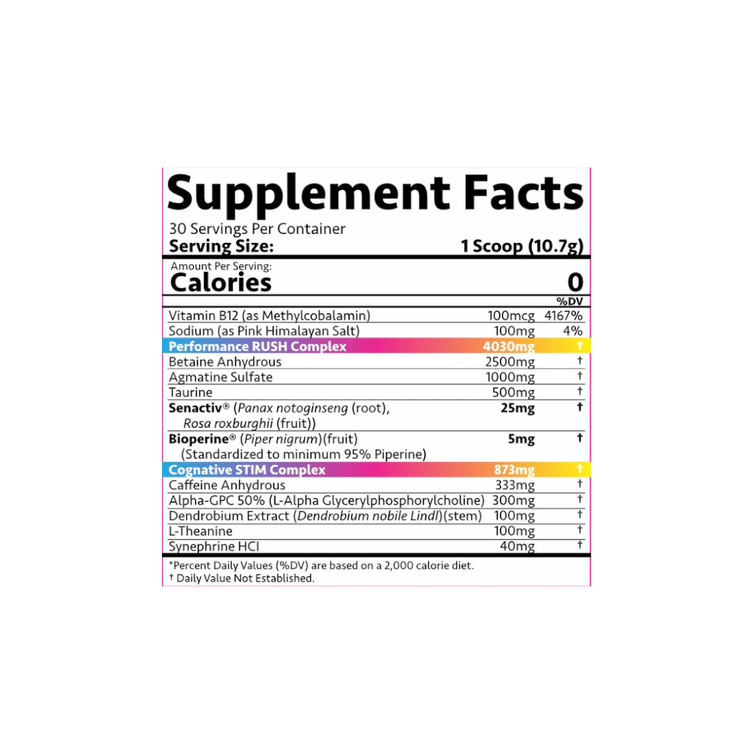 Stim-Rush is a high-stimulant pre-workout designed for athletes and fitness enthusiasts who want unmatched energy, laser-sharp focus, and unstoppable drive. Each serving combines cutting-edge ingredients to power you through the toughest workouts.