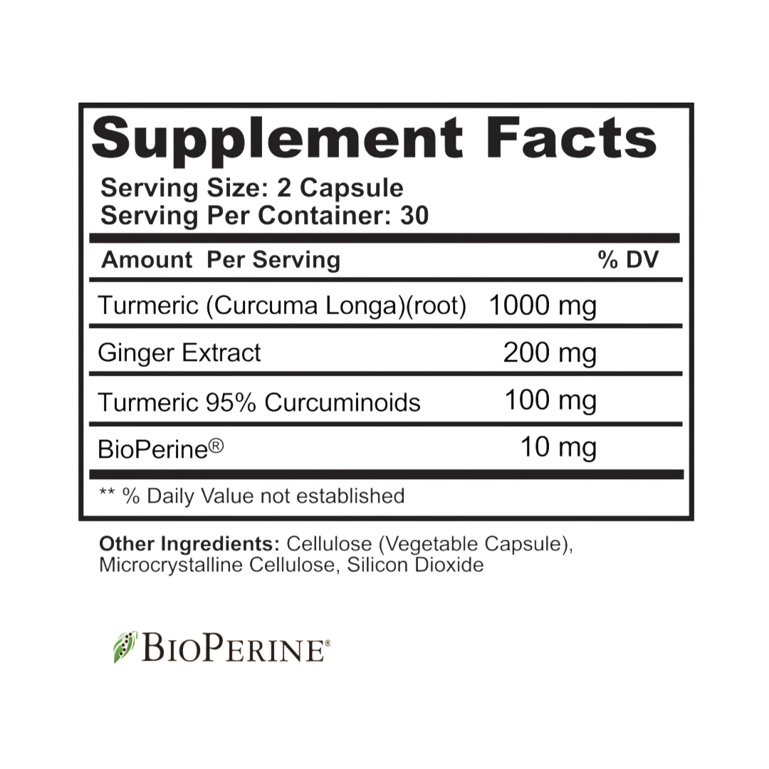 Turmeric’s active compound, curcumin, is a potent natural anti-inflammatory and antioxidant ... helping to neutralize free radicals, support brain and heart health, and promote overall vitality. Ginger adds complementary benefits, supporting digestion, joint comfort, and immune function. Together, they offer a natural alternative to medications for inflammation, arthritis relief, and cardiovascular support.